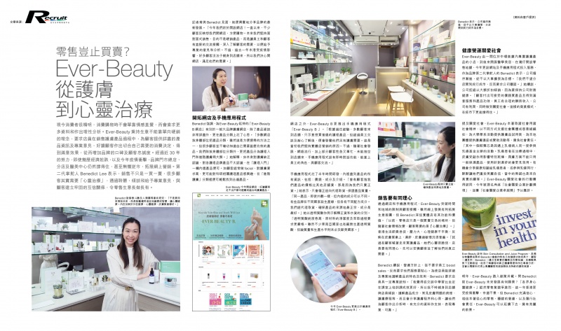 The Recruit Magazine is published with an interview with our Marketing Director, Benedict, today! Our company's strategy and development vision is warmly reported in the interview. More details for our affiliated e-shop everbeautybshop.com.hk are included in its content as well!